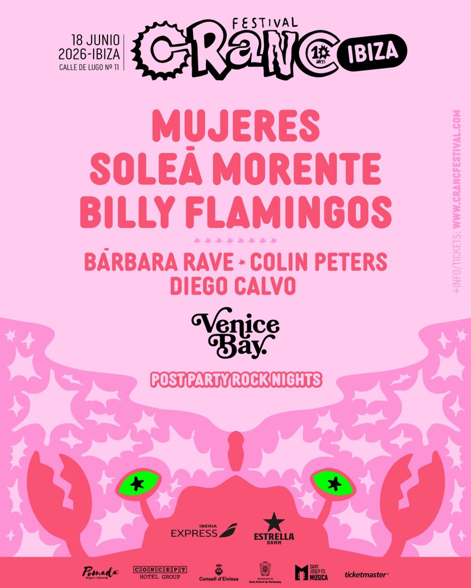 Dentro de la celebración de los 10 años del Universo Cranc, Cranc Ibiza llega el 18 de junio de 2026 a Ibiza con una noche de conciertos y fiesta en Venice Bay Ibiza.