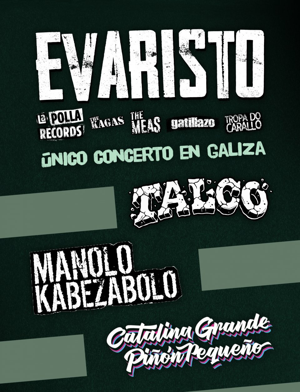 Para los conciertos con la marca "Evaristo" ha preparado un recorrido de grandes éxitos con los temas que marcaron a generaciones de jóvenes en todo el mundo de todas sus etapas, desde la La Polla Records, la banda que redefinió el punk rock en español y que continúa siendo un referente cultural para miles de seguidores, hasta su más reciente aventura con Tropa do Carallo, pasando por otros proyectos icónicos del artista, como Gatillazo, The Meas y The Cagas.