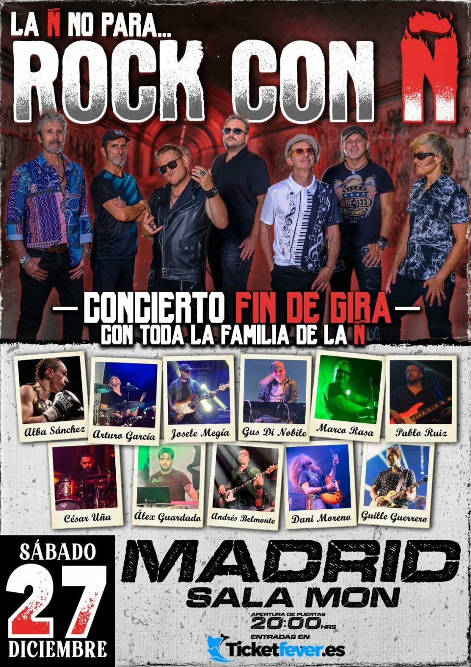 Rock con Ñ vuelve a Madrid para terminar su gira 2025, que ha llevado a la banda por todos los rincones de España y que ha supuesto un paso más en la carrera de este grupo que el año 2026 cumple 5 años y que esta formado por miembros de Asfalto, Burning, Sangre Azul, Topo, Ñu y Cráneo.