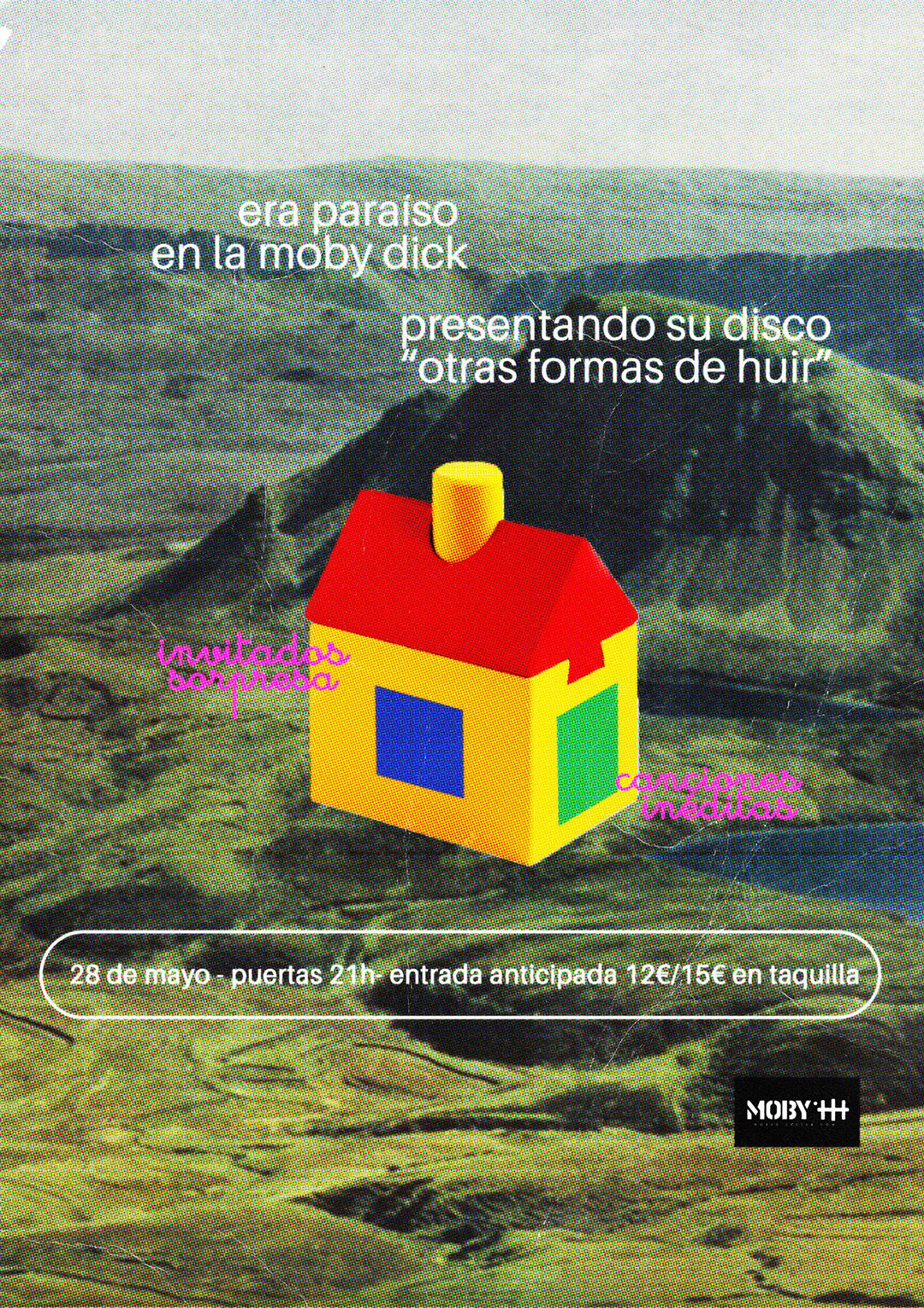 Era Paraíso vuelve a los escenarios para presentar su nuevo disco "Otras Formas De Huir". Tras su paso por esta misma sala con "La Maratón Mundial (2021)", la banda regresa a Moby Dick con un concierto en el que sonarán canciones inéditas junto a temas de su primer disco. Además, contarán con amigos de la escena que se subirán al escenario para compartir algunas de estas canciones.