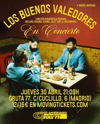 Los Buenos Valedores son Kevin Sabariego voz y guitarra; Héctor Martín, guitarra eléctrica; Carlos Oliva, guitarra flamenca y Marc Trías, percusión La guitarra flamenca se hermana con la guitarra latina, invitando también a la guitarra americana para actualizar el concepto de trío único, venerado por muchos de los mejores músicos de la escena barcelonesa del rock and roll, blues, swing… Reivindican el pequeño formato, adoran las canciones bonitas, defienden la guitarra como compañera de viaje y revisan los diferentes géneros que se han abanderado en la canción de amor y desamor. Bolero, rumba, chachachá, swing, rancheras y cuplés son traídos a la Barcelona actual en un formato directo y honesto.