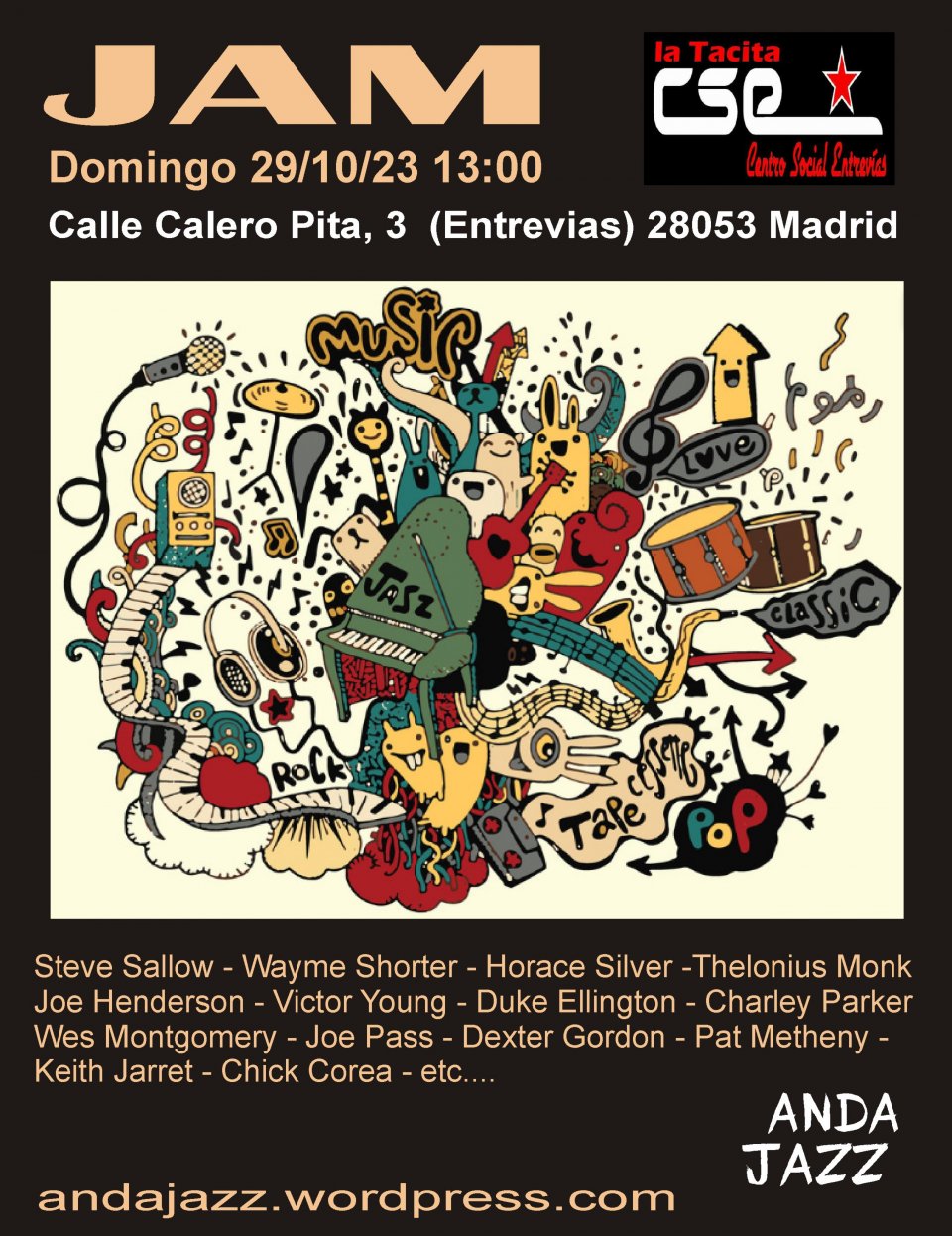 Primera Andajam de la temporada en el CSE. Jam abierta a todos los músicos que quieran participar.