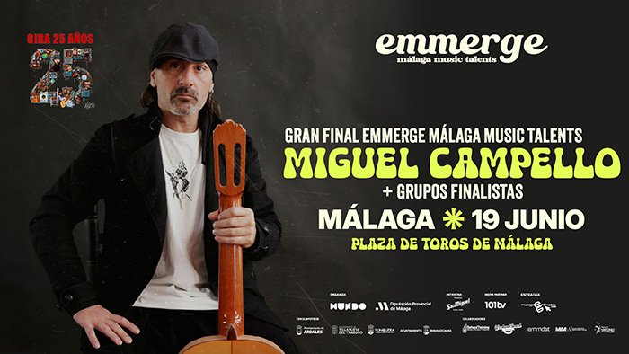La gran final de Emerge Málaga Music Talents 2026 reunirá sobre el escenario a los cuatro grupos finalistas de esta segunda edición, seleccionados tras un exigente proceso en el que han demostrado su calidad artística, personalidad y proyección dentro de la escena musical actual y la actuación principal de Miguel Campello.